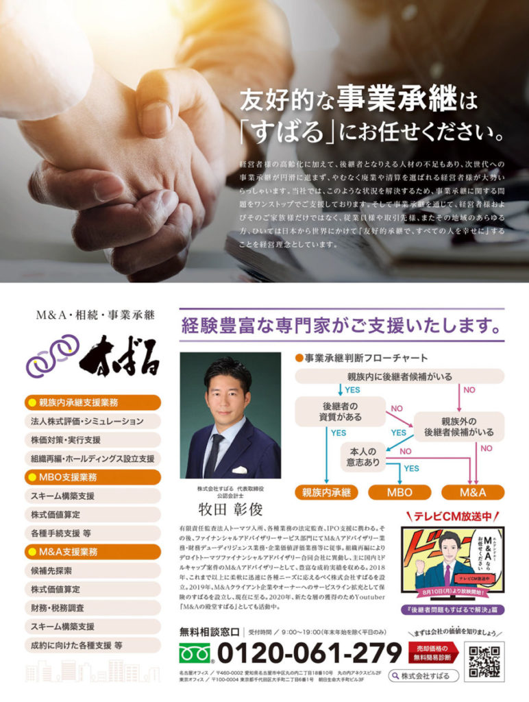 経済専門雑誌「週刊エコノミスト」2020年9月15日号(9月7日発売)に、株式会社すばる(現在:株式会社M&A DX)が掲載されました。 よろしければ是非ご覧ください。
